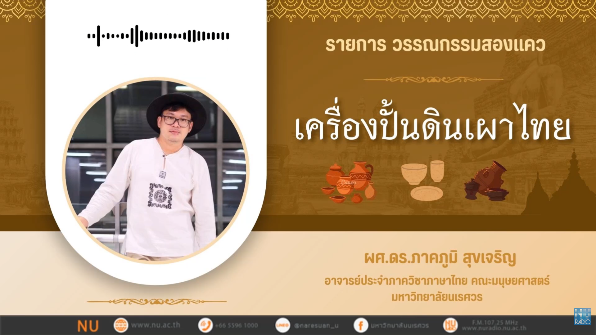- ดำเนินรายการโดย : ผศ.ดร.ภาคภูมิ สุขเจริญ ภาควิชาภาษาไทย คณะมนุษยศาสตร์ มหาวิทยาลัยนเรศวร