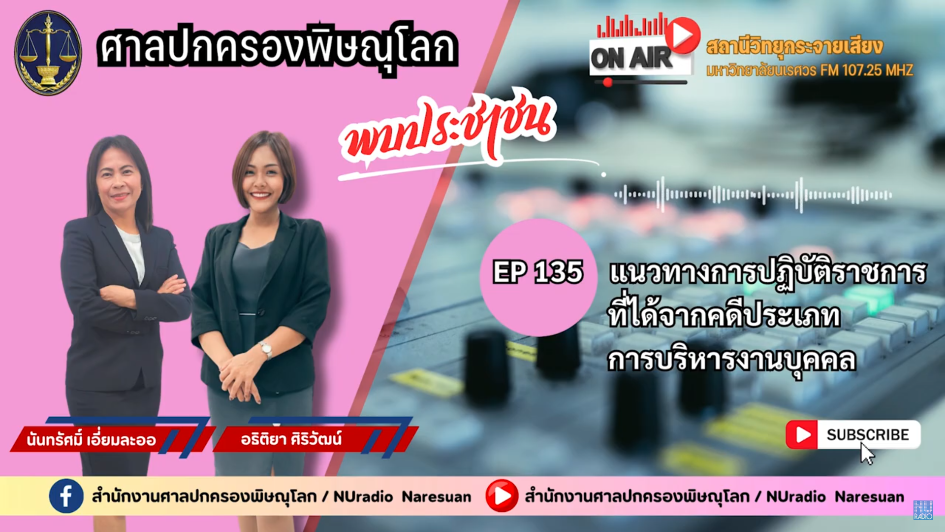 - ดำเนินรายการโดย : นางสาวอธิติยา ศิริวัฒน์ เจ้าหน้าที่ศาลปกครอง (ด้านการเผยเเพร่ประชาสัมพันธ์) ผู้ให้สัมภาษณ์ คุณนันทรัศมิ์ เอี่ยมละออ พนักงานคดีปกครองชำนาญการพิเศษ สำนักงานศาลปกครองพิษณุโลก