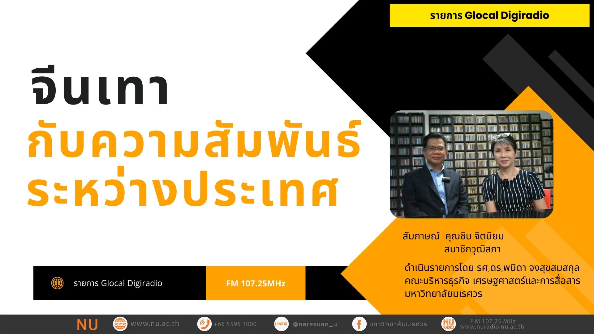 - ดำเนินรายการโดย : รศ. ดร.พนิดา จงสุขสมสกุล คณะบริหารธุรกิจ เศรษฐศาสตร์และการสื่อสาร มหาวิทยาลัยนเรศวร