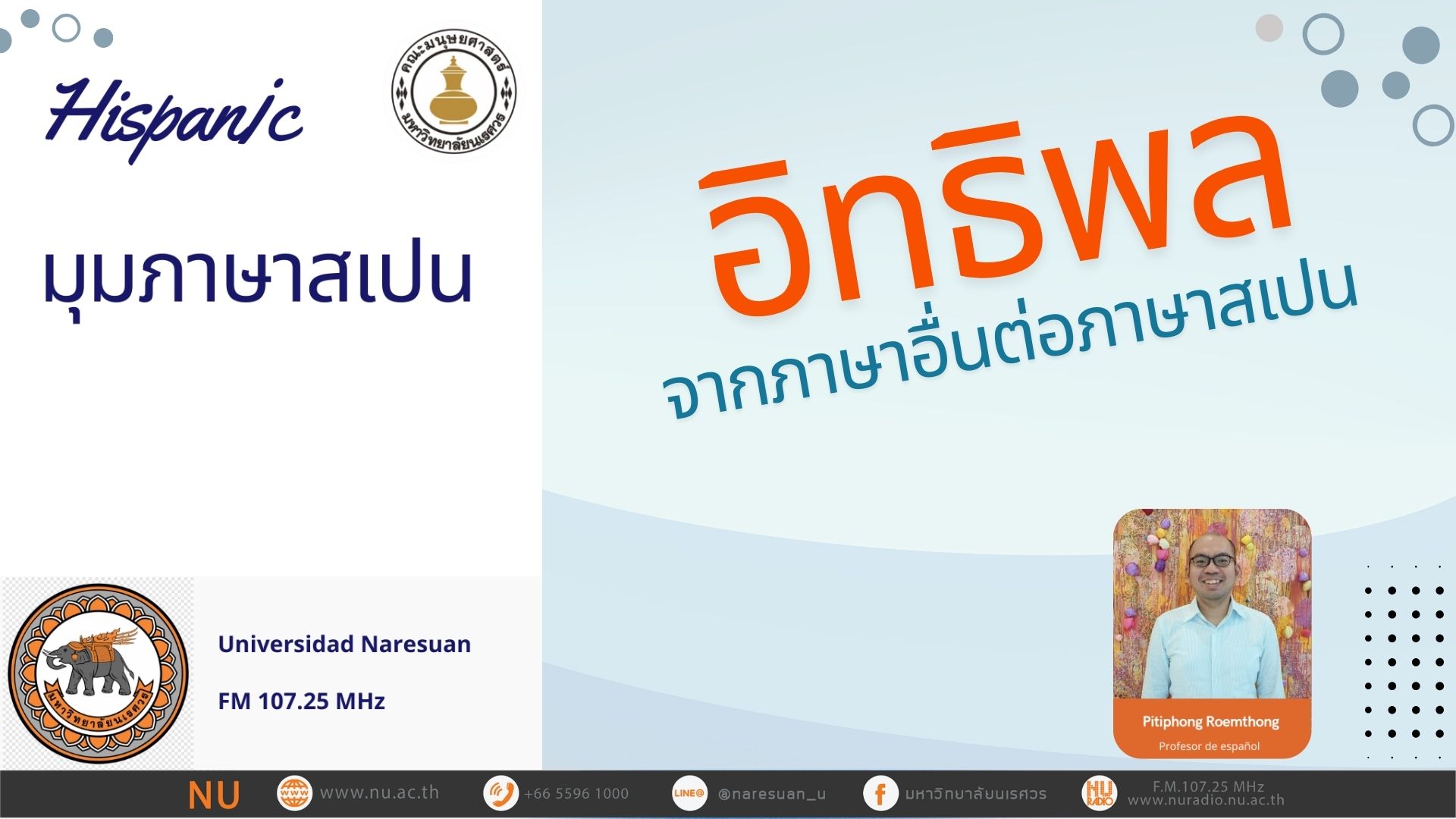 - ดำเนินรายการโดย : อาจารย์ปิติพงษ์ เริ่มทอง ภาควิชาภาษาตะวันตก สาขาวิชาโทภาษาสเปน คณะมนุษยศาสตร์ มหาวิทยาลัยนเรศวร