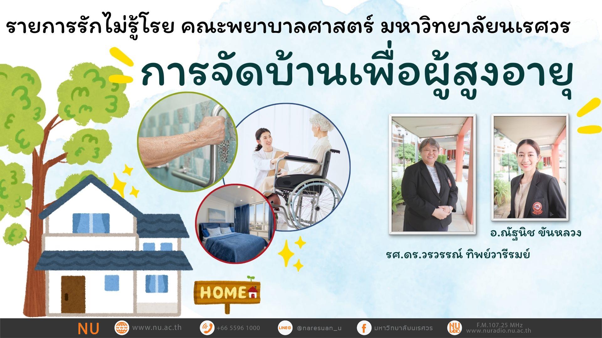 รายการ : รักไม่รู้โรย เรื่อง : การจัดบ้านเพื่อผู้สูงอายุ ดำเนินรายการโดย : รศ.ดร.วรวรรณ์ ทิพย์วารีรมย์ และ อาจารย์ณัฐนิช ขันหลวง คณะพยาบาลศาสตร์ มหาวิทยาลัยนเรศวร วันเวลาออกอากาศ : ทุกวันเสาร์ เวลา 18.30 – 19.00 น. ผ่านคลื่น : F.M. 107.25 MHz สถานีวิทยุกระจายเสียงมหาวิทยาลัยนเรศวร #วิทยุเพื่อการศึกษาสร้างปัญญาสู่มวลชน
