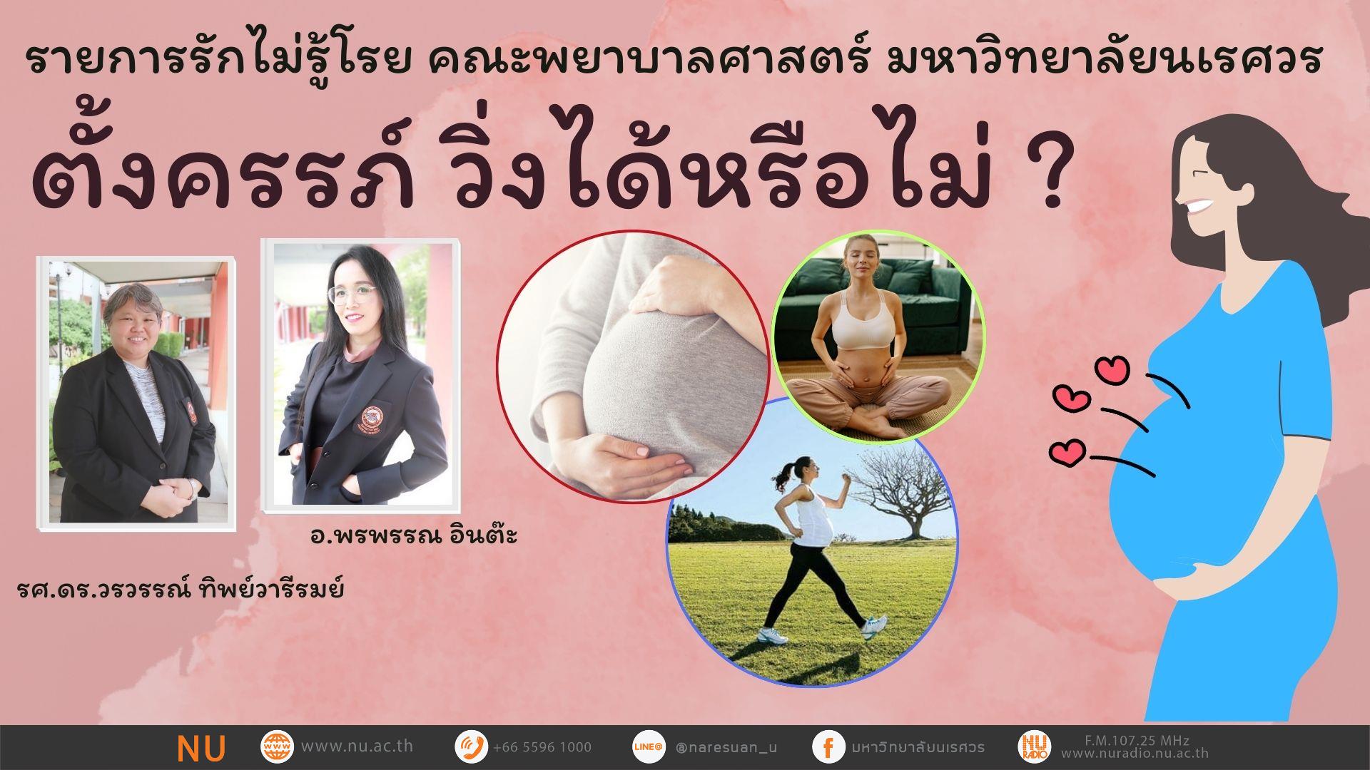 รายการ : รักไม่รู้โรย เรื่อง : ท้องแล้ว วิ่งได้หรือไม่? ดำเนินรายการโดย : รศ.ดร.วรวรรณ์ ทิพย์วารีรมย์ และ อาจารย์พรพรรณ อินต๊ะ คณะพยาบาลศาสตร์ มหาวิทยาลัยนเรศวร วันเวลาออกอากาศ : ทุกวันเสาร์ เวลา 18.30 – 19.00 น. ผ่านคลื่น : F.M. 107.25 MHz สถานีวิทยุกระจายเสียงมหาวิทยาลัยนเรศวร #วิทยุเพื่อการศึกษาสร้างปัญญาสู่มวลชน