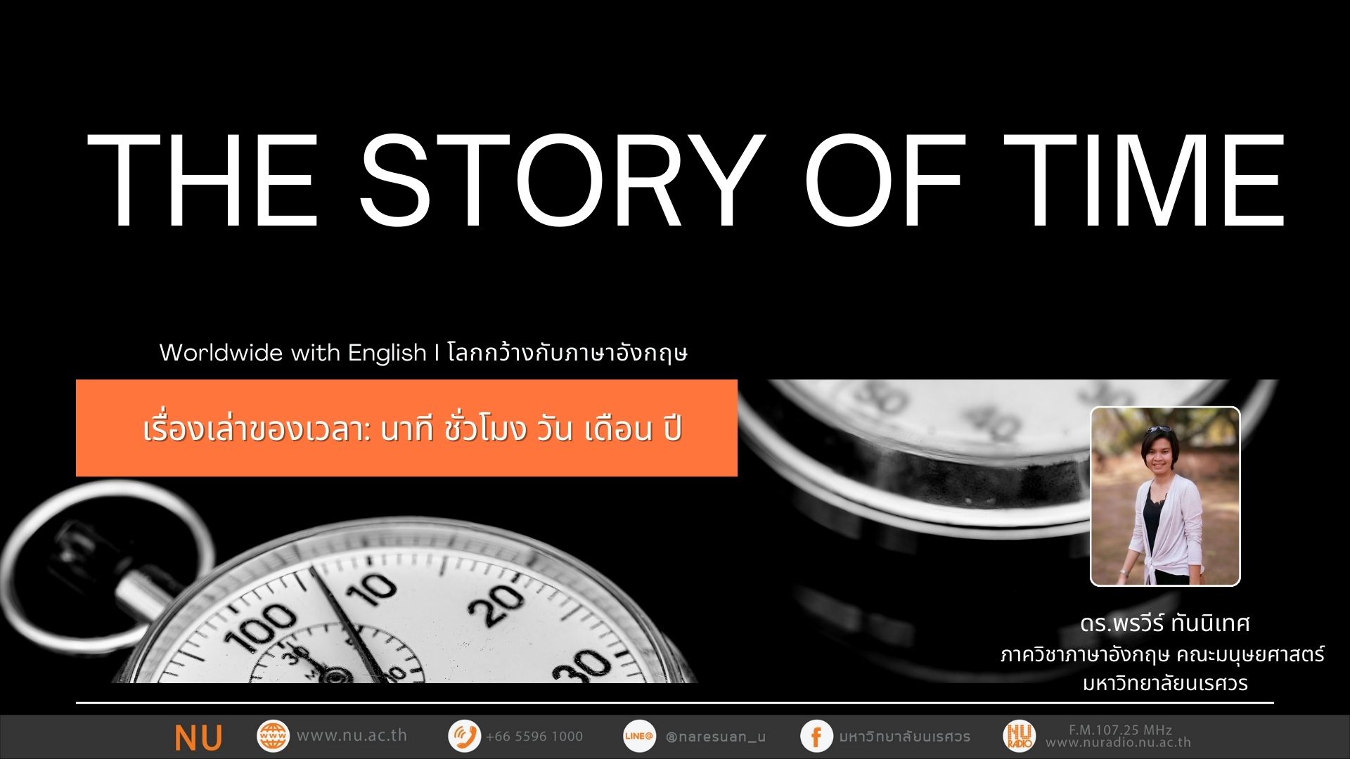 - ผู้ดำเนินรายการ : ดร.พรวีร์ ทันนิเทศ ภาควิชาภาษาอังกฤษ คณะมนุษยศาสตร์ มหาวิทยาลัยนเรศวร