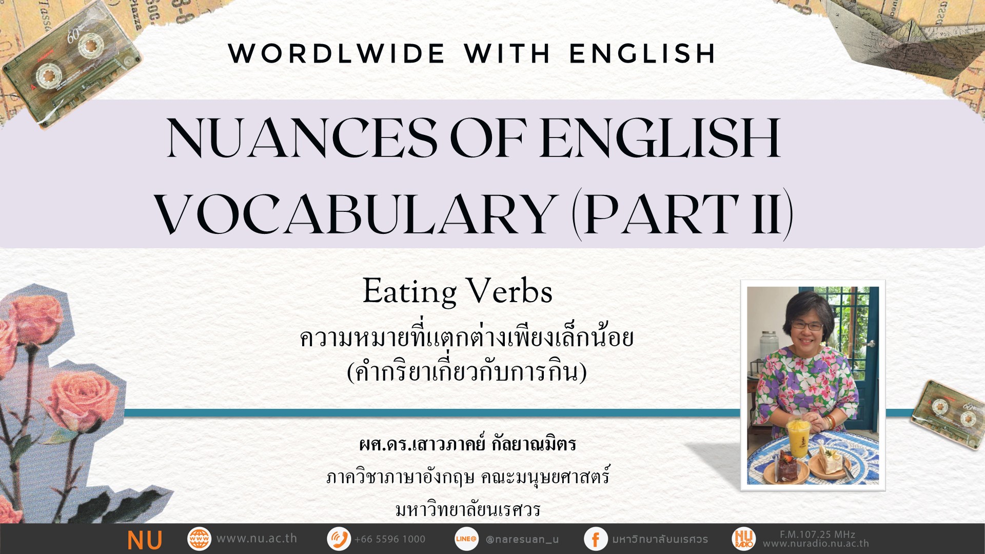 - เรื่อง: Nuances of English Vocabulary (Part II) ความหมายที่แตกต่างเพียงเล็กน้อย เกี่ยวกับการกิน ตอนที่ 2